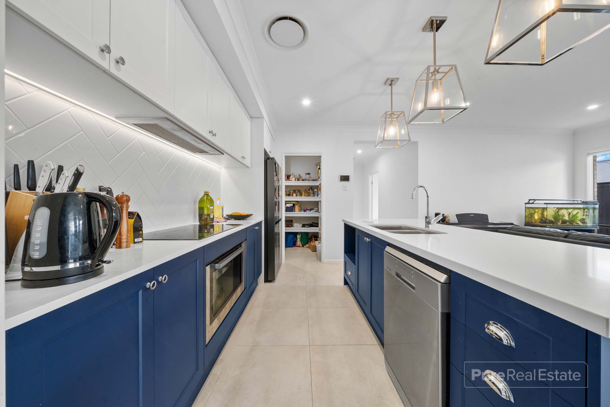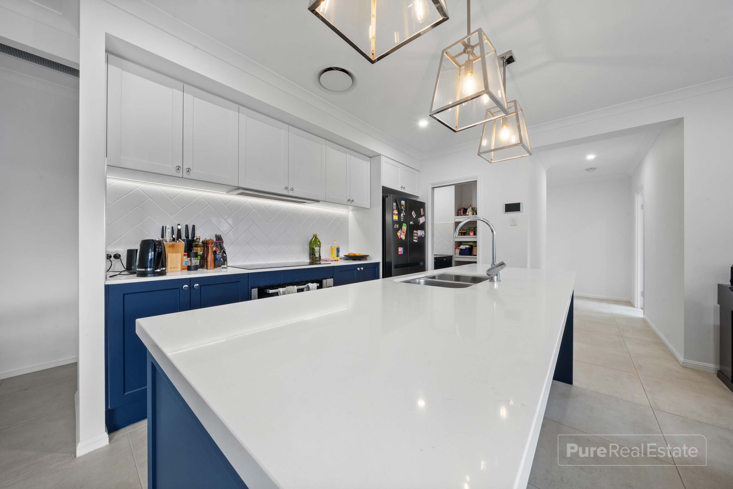 At the centre of the home, the kitchen is both functional and well-appointed, offering generous bench space, ample cabinetry and a separate butler’s pantry that keeps the main entertaining area clean and uncluttered.